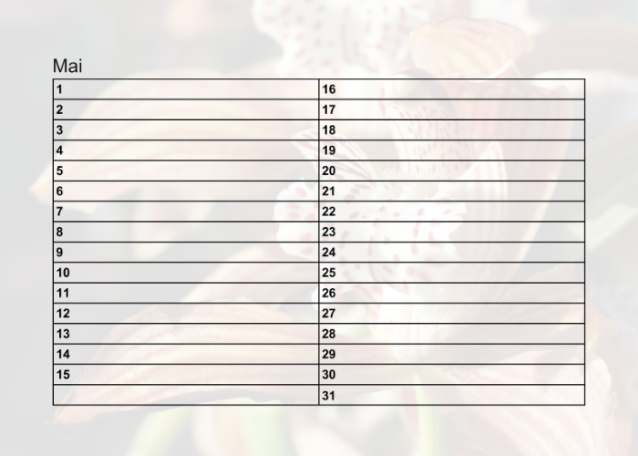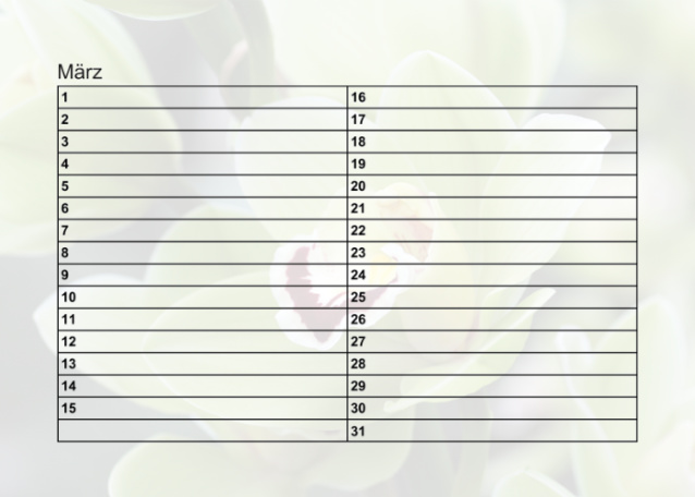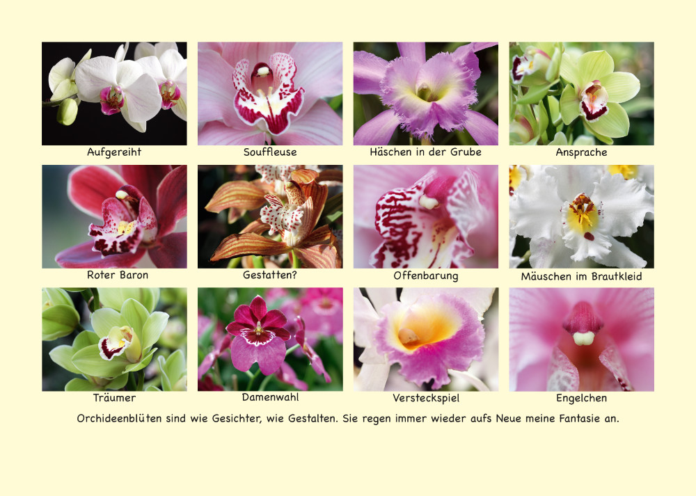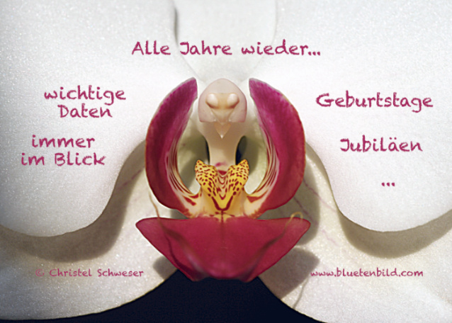 „Orchideen – Zauber“ ist ein Dauerkalender im Format A5 doppelt, den man z.B. als Geburtstagkalender nutzen kann. Am Ende findet man eine Übersicht der Feiertage der Jahre 2026 und 2027.
